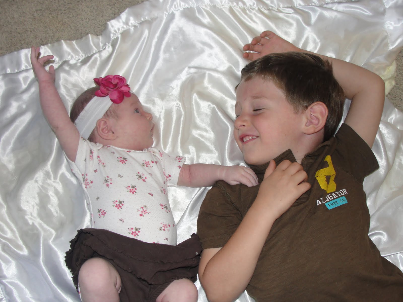 I know I have just been terrible about updating my blog, but I think the kids and I are finally getting our groove down. My little ones are just so cute and I love taking pictures of them. Ashton truly adores his sister and really likes to hep me take care of her. Now I did not pose my kids for these pictures, these are just the cute things that they do. I love my two little babies (even though one is not so little any more) and I love how much they love each other. Kaylynn already knows her brother and smiles at him every time she sees him. They are just so cute. These are just some random pictures I have taken of the kids here and there. The first one cracks me up because this is how Kaylynn sleeps everyday. She doesn't like her arms to be in the blankets and she loves stretching out. I thought it was funny so I took a picture of it. Enjoy!